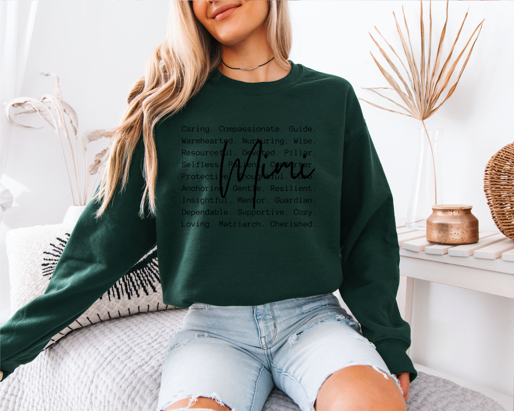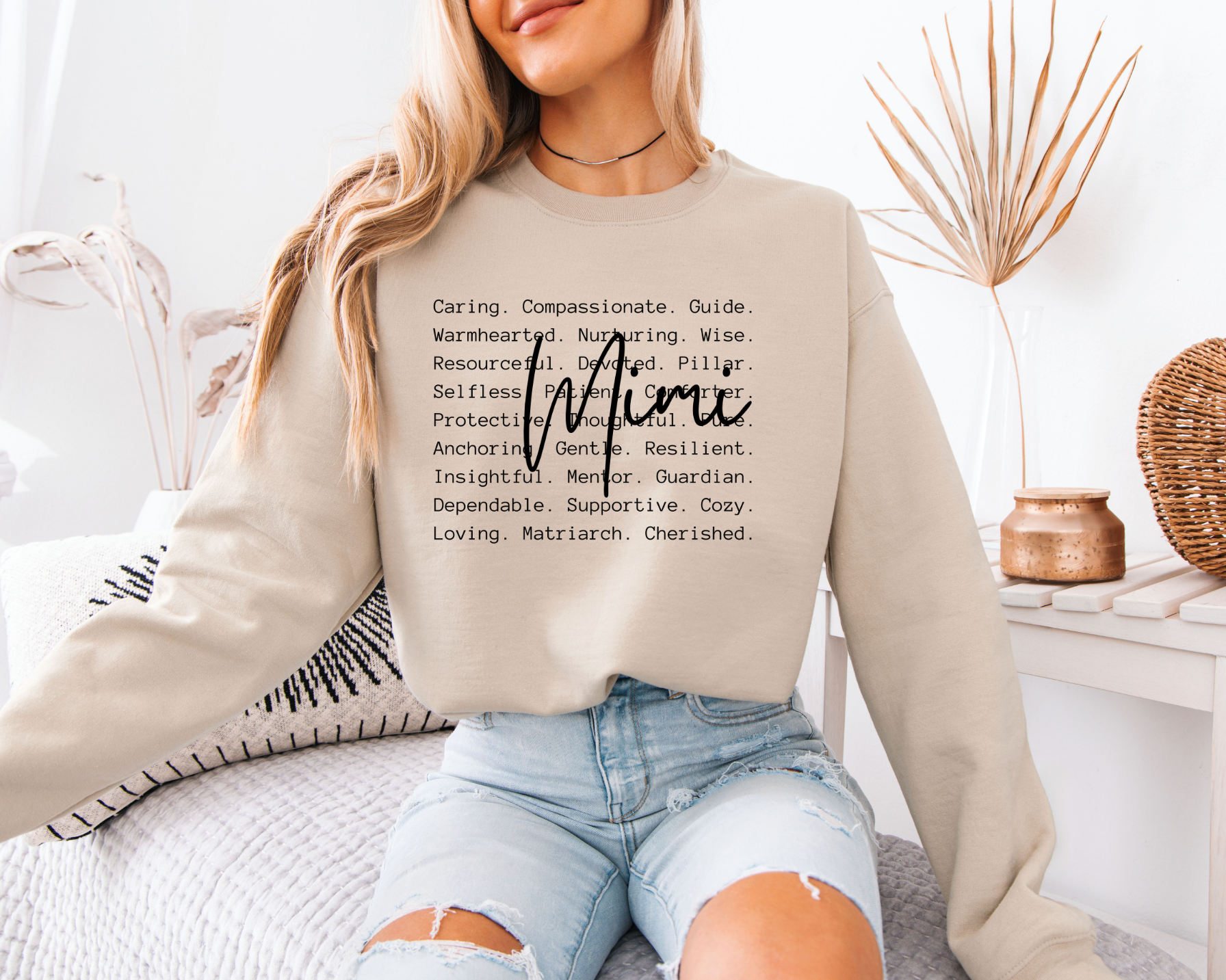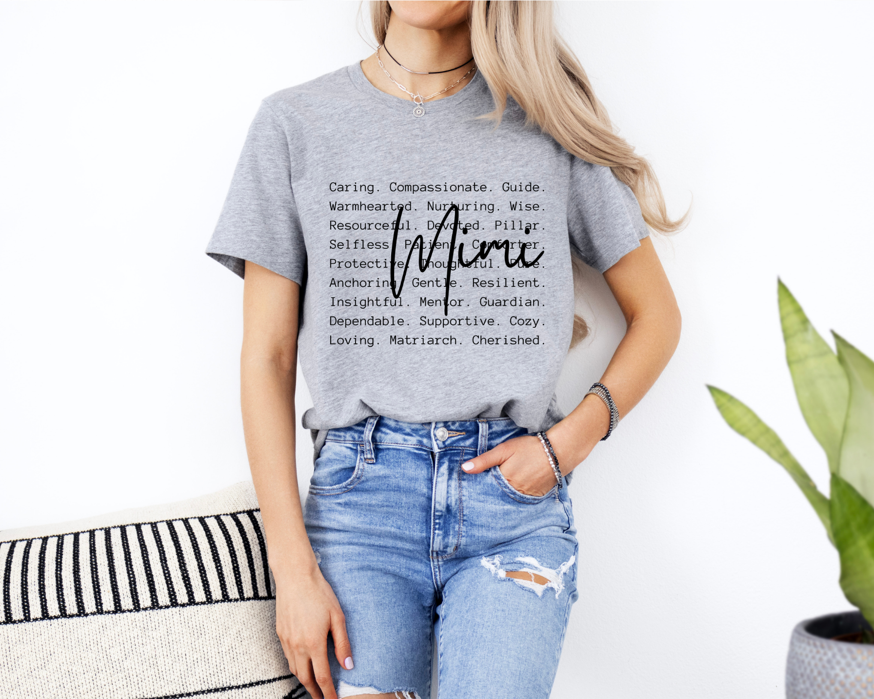 This transfer features a beautiful definition-style design with “Mimi” in a handwritten script across the center. It’s meaningful, cozy, and so easy to press!