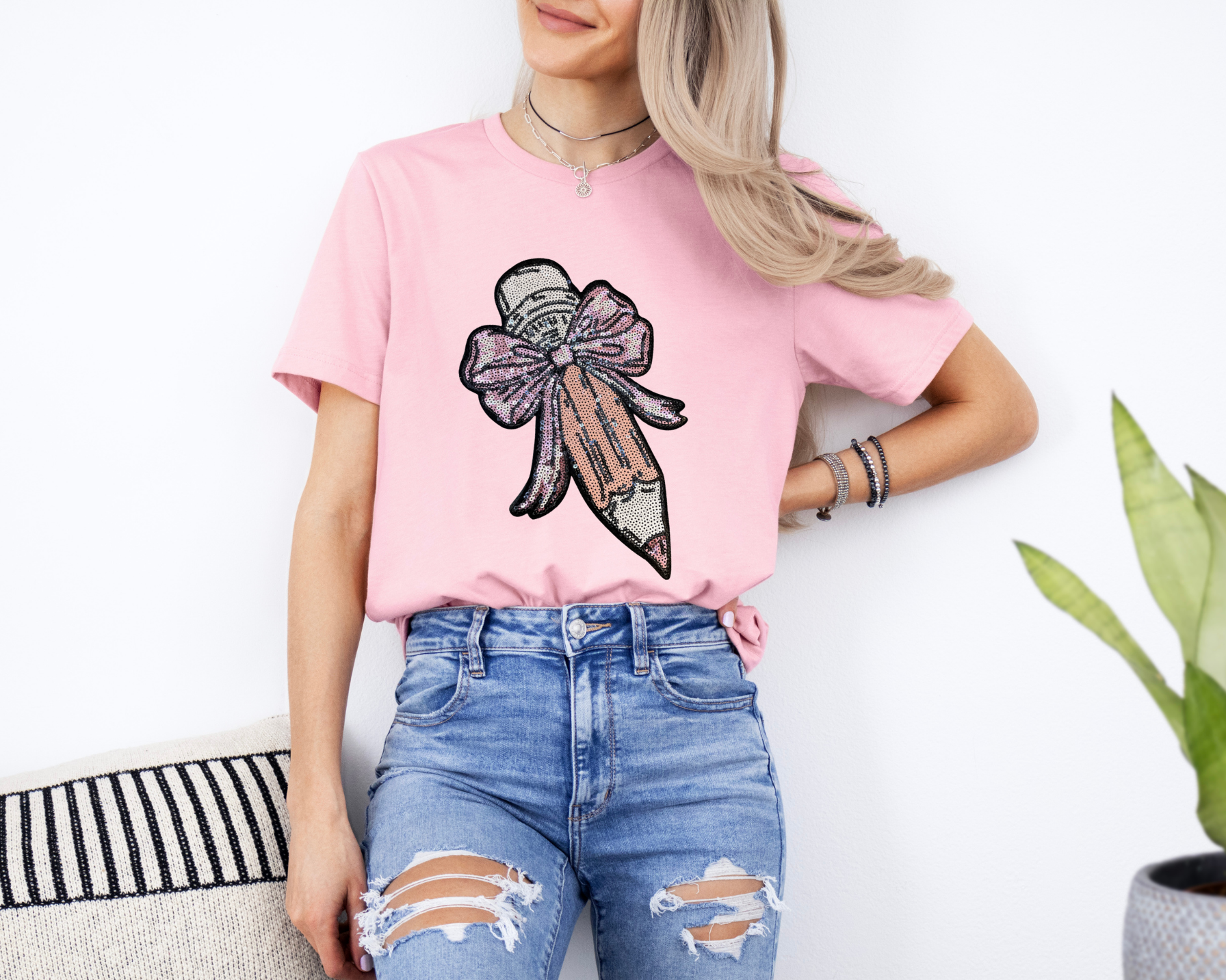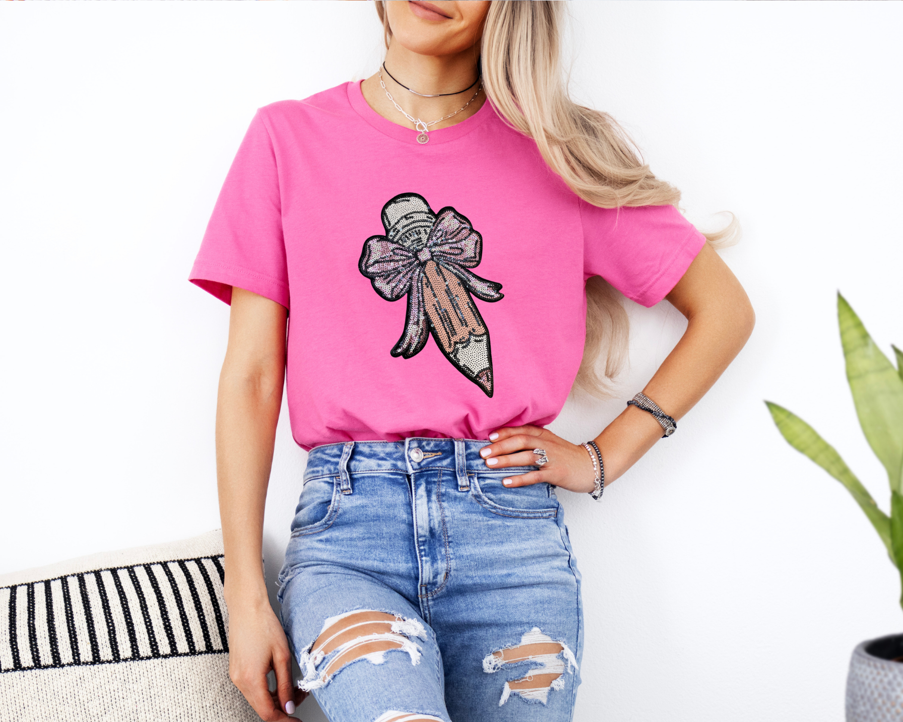 This high-quality chenille patch pencil with a girly bow adds the cutest pop to any outfit. Available on your choice of tee or sweatshirt and offered in multiple colors so every teacher can find their perfect vibe!