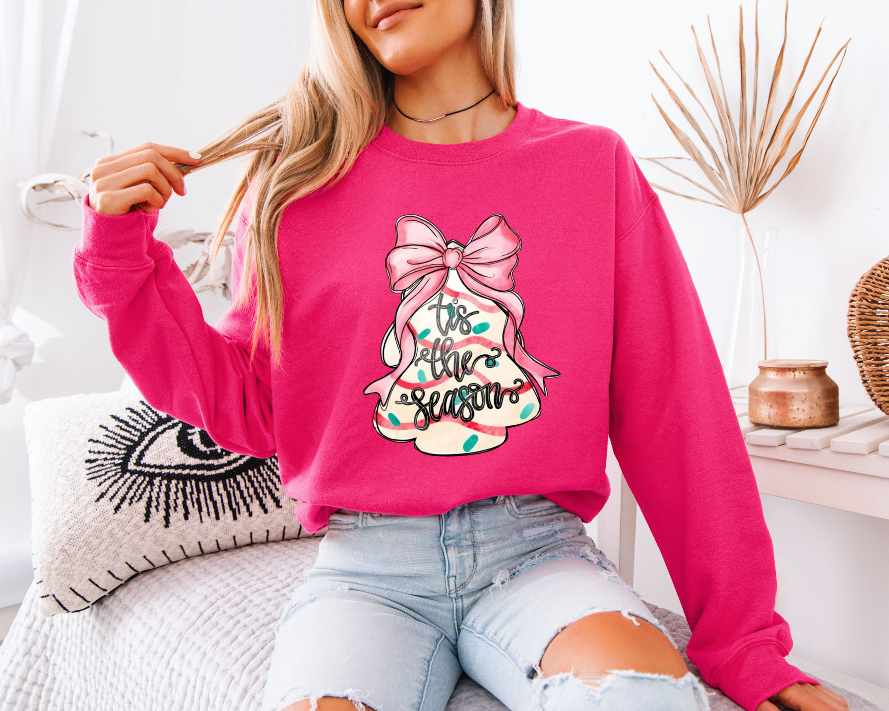 This Tis the Season Pink Bow Tree DTF transfer is the perfect mix of girly + Christmas magic 🎀✨