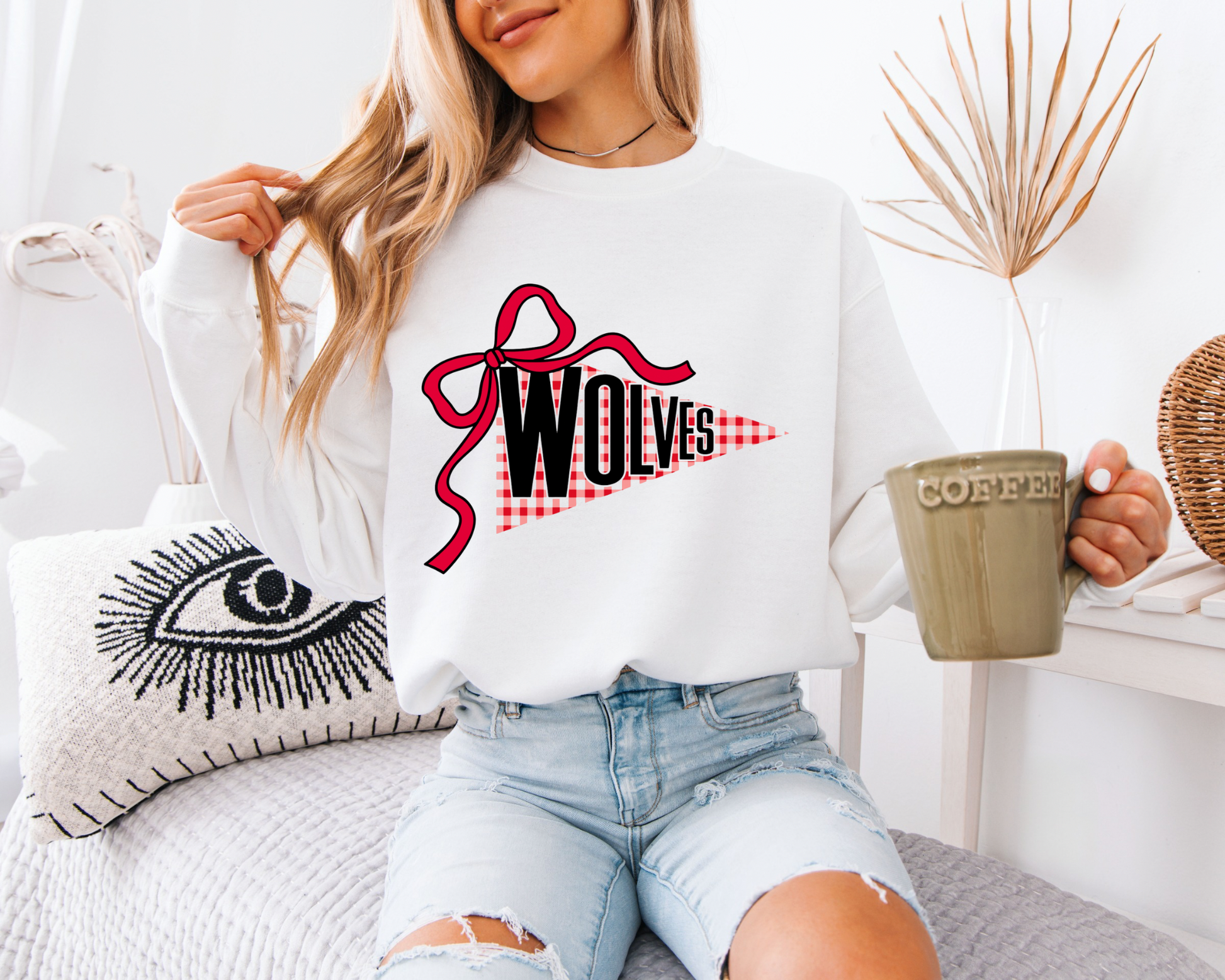 This red gingham pennant “Wolves” design with a bold bow is perfect for game days, pep rallies, and all things school pride — sweet with just the right amount of sass!